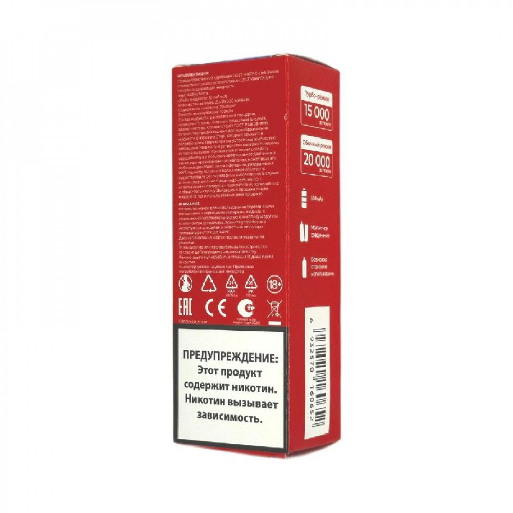 ЛинейкаКартриджная система Lost Mary X-Link 20000 МатериалПластик Объем жидкости, мл12