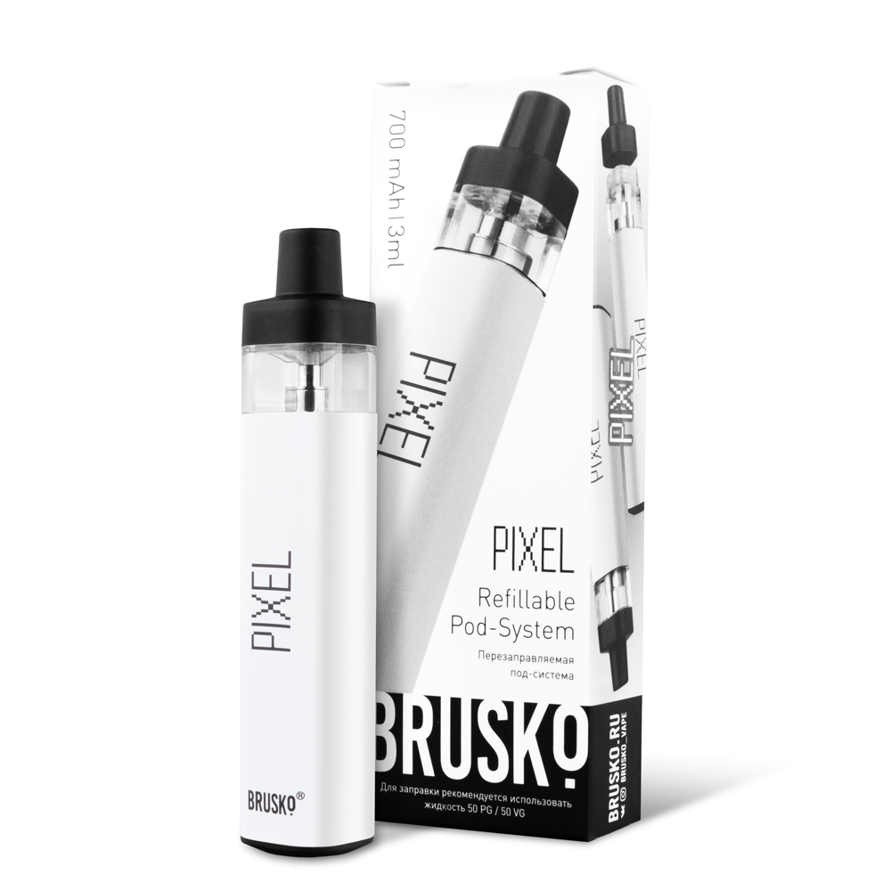 Перезаправляемая Под-Система Бруско Пиксель (Brusko Pixel) 700 mah, Белый - купить в Очере
